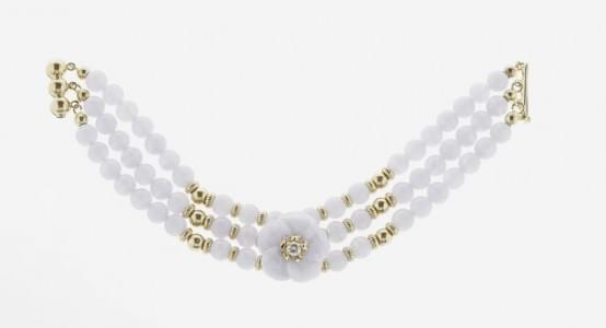3240. Bracelet de trois rangs de perles d'agate bleue orné d'une fleur...