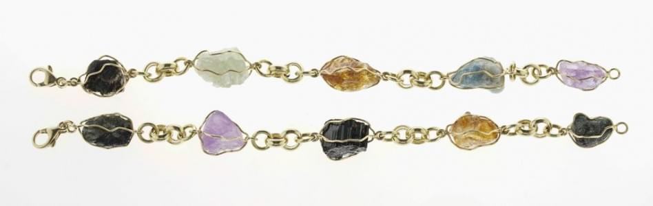 3248. Lot de deux bracelets sertis de bruts de pierres semi-précieuses