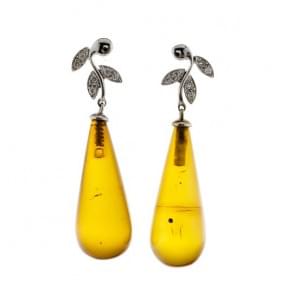 3249. Paire de boucles d'oreilles serties de gouttes d'ambre