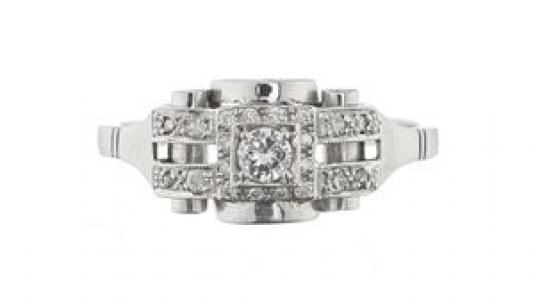 3220. Bague solitaire sertie d'un diamant (env. 0.3 ct) épaulé de diam...
