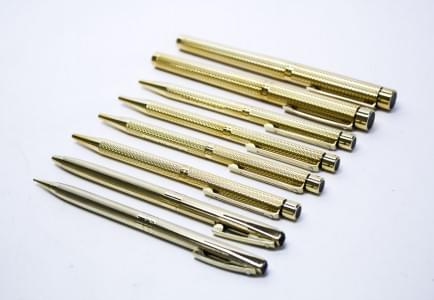 3277. Cartier, stylo guilloché, le capuchon surmonté des trois anneaux...