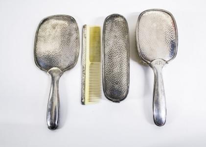 3282. Nécessaire de coiffeuse comprenant: deux brosses, un peigne et u...