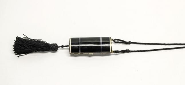 3238. Lot de deux broches "bijou de cheveu", l'une émaillée de noir, l...