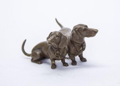 Métal, métal doré et laque noire, L 13 cm, dans leur écrin