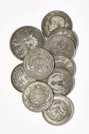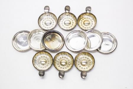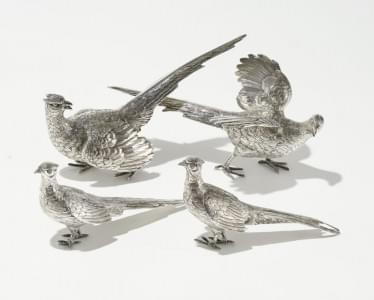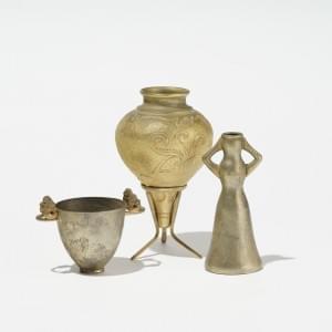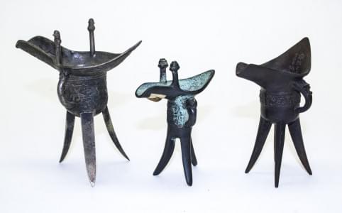 L'un en argent, les autres en bronze ciselé de masques de taotie...