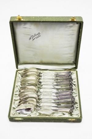 3455. Six fourchettes et six couteaux à poisson, deux pièces de servic...