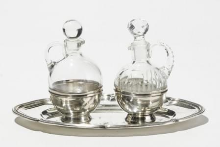 3456. Set de baptème à décor de roseaux et pampres de vigne