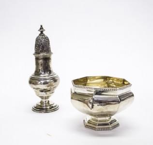3437. Saupoudroir balustre et coupe octogonale sur pied