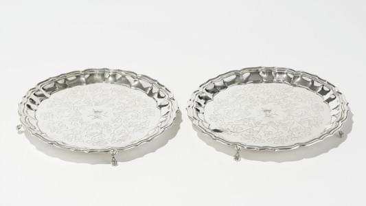 3446. Paire d'assiettes de présentation à bordure en accolade et motif...