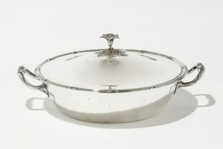 3468. Légumier de style Louis XVI à bordure ruban croisé et prise fleu...