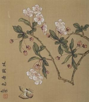Branche de cerisier en fleurs, gouache sur tissu, 15x17 cm