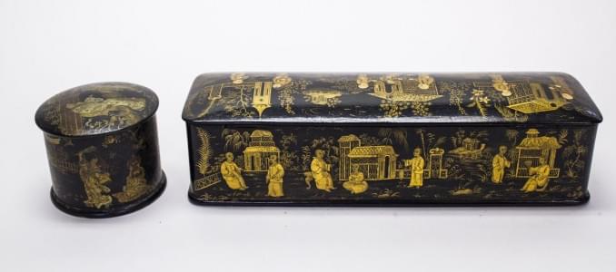 Papier bouilli laqué, L 30 cm et D 9 cm
