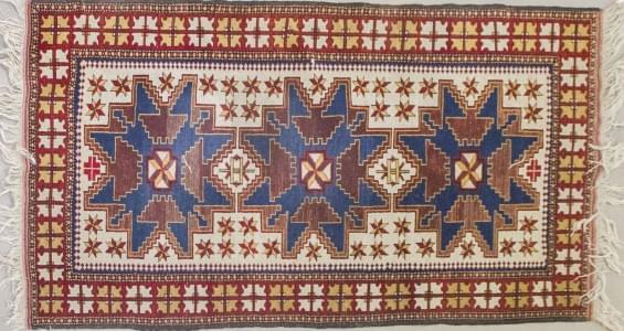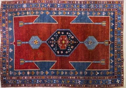 A décor de médaillons hexagonaux sur fond brique, laine, 228x159...