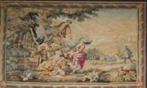 Pieds gaines moulurées, merisier, laiton, 75x112 cm