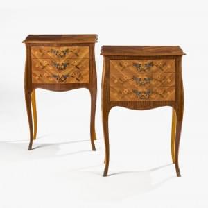 Bois de placage marqueté de fleurs, bronze doré, 66x44x30 cm