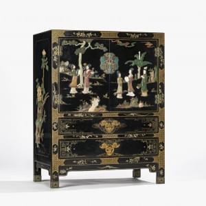 Deux vantaux et deux tiroirs, laque, pierres dures, émaux cloiso...