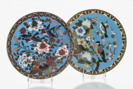392. Paire de grands plats en cloisonné, Japon, XIXe s