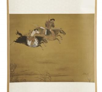 Girl on Buffalo, encre et couleurs sur papier collé sur soie, si...