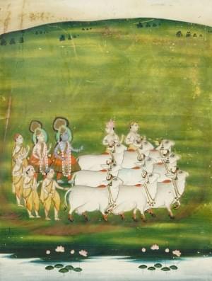 Vaches sacrées et divinités, miniature, gouache sur papier, 19x1...