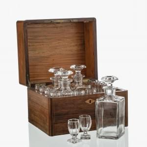 Bois, comprenant 4 carafes et 12 verres, 24x29x23 cm