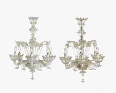 Six lumières, verre blanc à décor de feuilles d'acanthes, H 75 c...