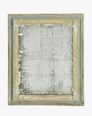 Bois laqué blanc rechampi bleu, glace au mercure, 91x74 cm. Coll...