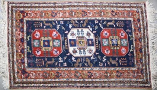 Laine à décor de trois médaillons sur fond bleu nuit, bordure à...