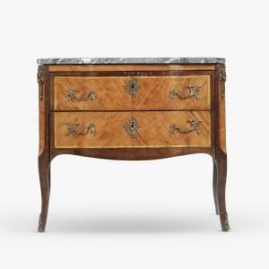 Placage de bois de rose et bois de violette, deux tiroirs, plate...