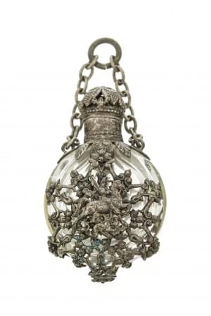 3217. Flacon à priser entouré d'un motif ajouré de rinceaux et Saint G...