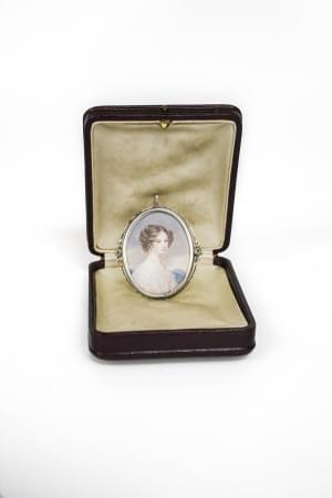 Gouache sur ivoire, montée en broche en argent, 5x4 cm