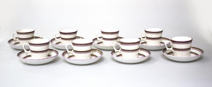 3242. Suite de dix tasses à décor de filets violets et orange