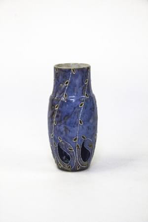 3245. Vase à décor de rameaux orange et bleu nuit sur fond bleu
