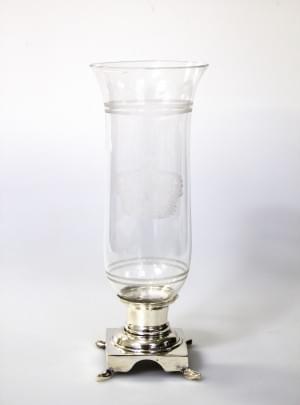 Métal et verre gravé, H 31 cm