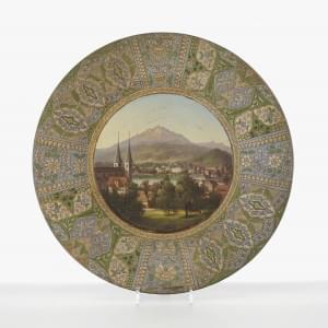 À décor de vues de Suisse, céramique émaillée, D 19 à 24 cm