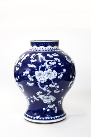 Porcelaine émaillée bleu et blanc à décor de fleurs de prunus, H...