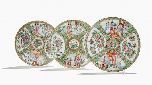 3413. Trois assiettes, Canton, Chine, XIXe s