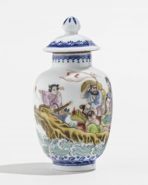Porcelaine émaillée polychrome à décor dans des réserves, H 9,5...