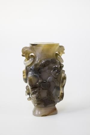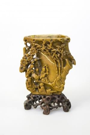 Stéatite sculptée à décor de motifs floraux, animaux et personna...