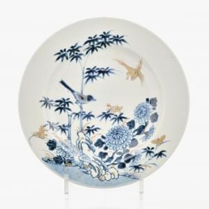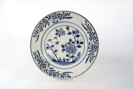 Porcelaine bleu blanc à décor de fleurs, D 21,5 cm