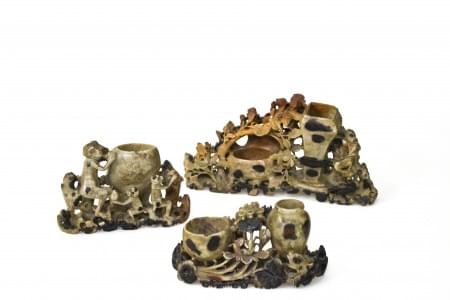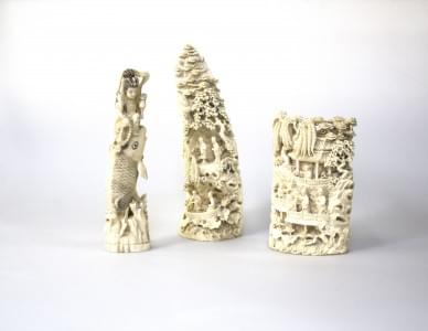 3477. Deux sculptures en ivoire et une en ivoirine, Chine