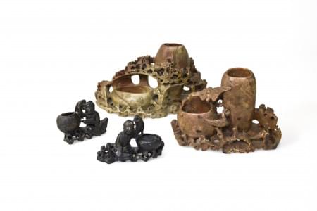 Stéatite tachetée noire, sculptée à décor de motifs floraux et s...
