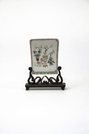 Porcelaine émaillée polychrome à décor de personnages, marque Qi...