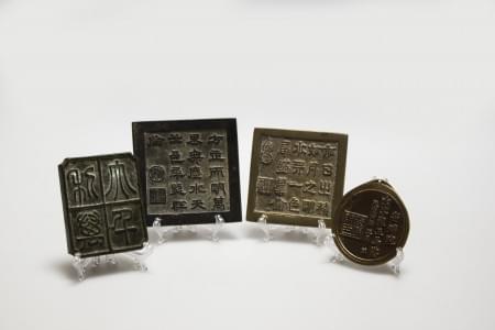 3445. Quatre plaques ornées de calligraphies, Chine, fin XIXe s