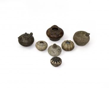 3460. Sept pots à chaux zoomorphes, Cambodge, Empire Khmer, XIIe-XIIIe...