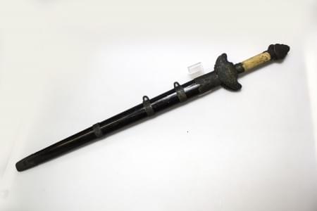 Métal gravé, fourreau laqué noir et applications de cuivre repou...