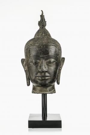 Anses en tête de lions, bronze à patine noire, H 12 cm (percé)