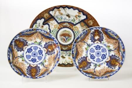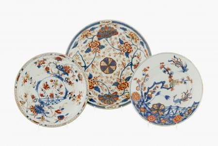 3478. Trois plats ronds Imari, Chine, XVIIIe s