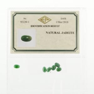 3479. Lot de six jadéites taille cabochon sur papier (total 5.4 ct)