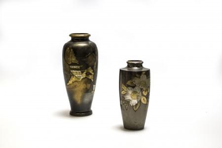 Bronze à patine brune, argentée et dorée, à décor de fleurs et p...