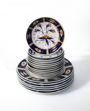 Porcelaine bleu rouge et or à décor floral, oiseaux et divers, D...